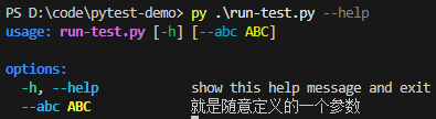 parser.add_argument('--abc', help="就是随意定义的一个参数")