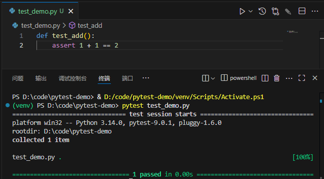 test_demo.py . [100%] # 测试完成